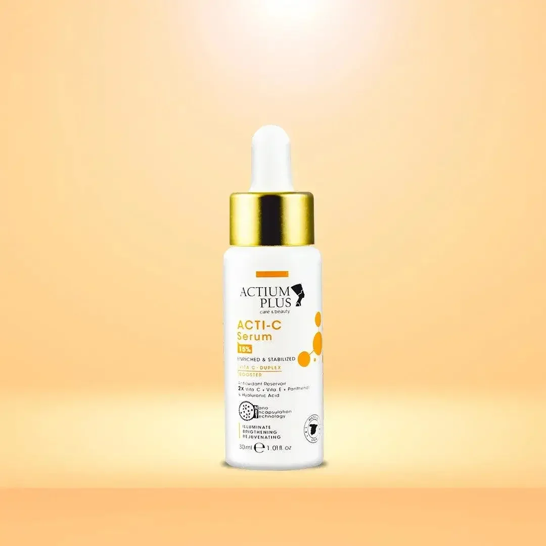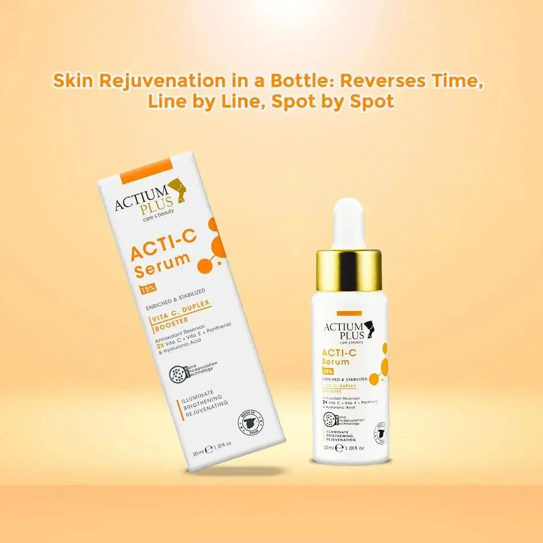 ACTI-C Serum is a skincare product that incorporates two highly stable forms of Vitamin C, namely Ascorbyl Glucoside and Sodium Ascorbate, to enhance its effectiveness. What sets Actium Plus apart is its use of Nano Encapsulation Technology, a cutting-edge formulation method designed to improve absorption without irritating the skin.