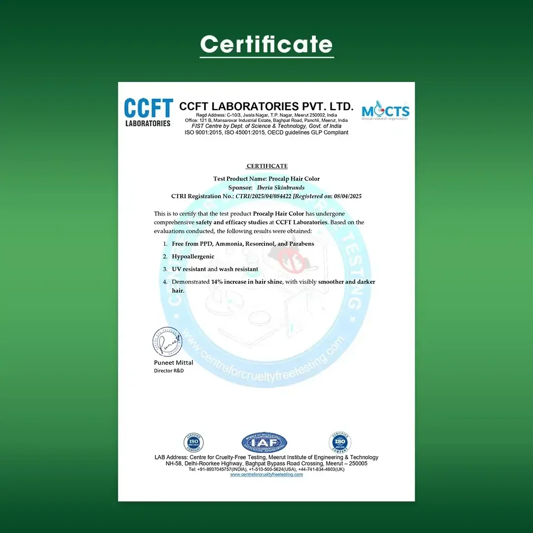 More than just a hair color, our formula is free of Ammonia, PPD, and Resorcinol. It has been dermatologist-verified for sensitive scalps to ensure a gentle, safe, and comfortable coloring experience. Enriched with Hydrolysed Keratin, Sodium Hyaluronate, and amino acids, it actively nourishes, strengthens, and hydrates your hair for a healthy, shiny result.